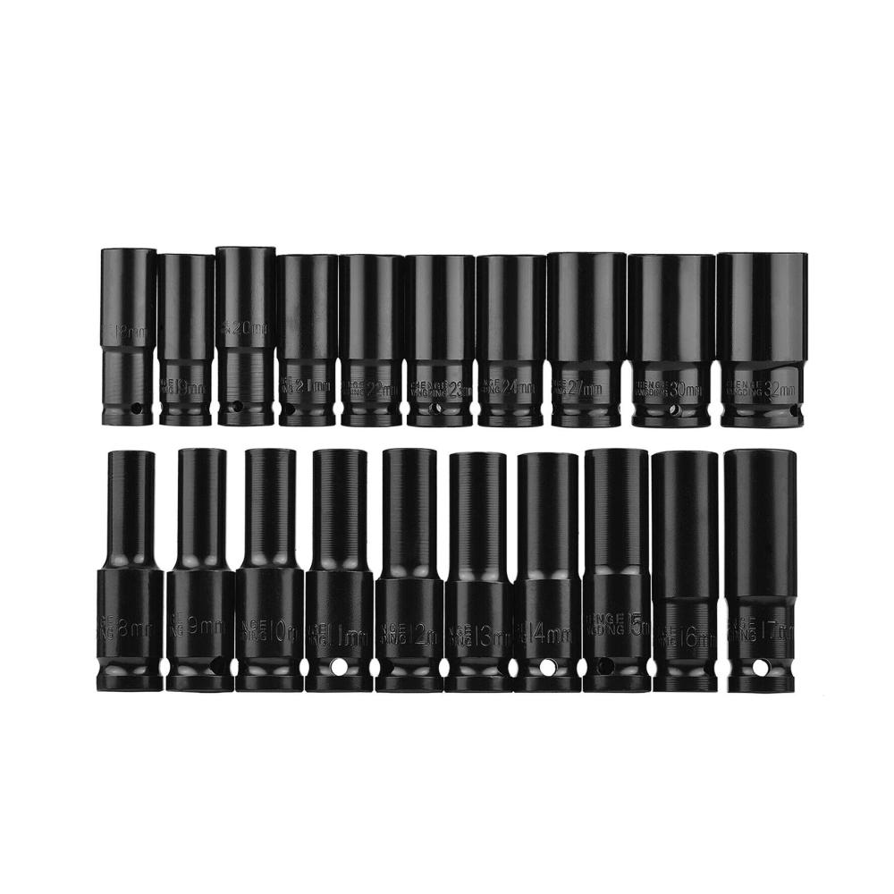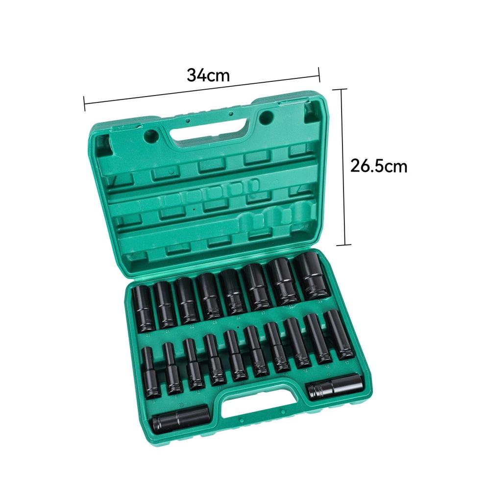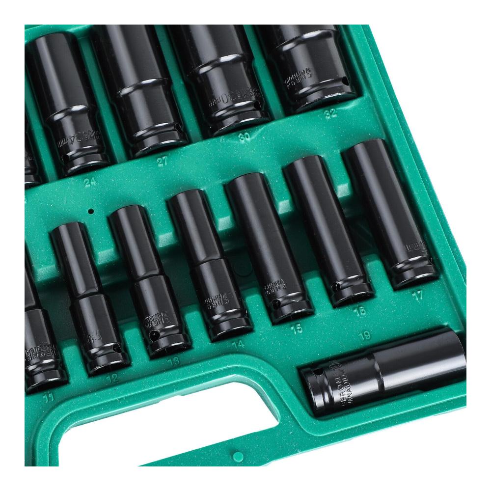 Verschiedene Größen: Das Set enthält 20 tiefe metrische Schlagstecknüsse in den Größen 8-32mm, die allen Anforderungen gerecht werden.