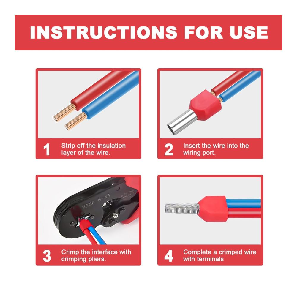 【Einfach zu bedienen】Aderendhülsen doppelt keine notwendigkeit zu löten, verwenden Sie eine crimpzange, um die hülse fest auf dem ende des kabels für eine schnelle elektrische reparatur zu befestigen.