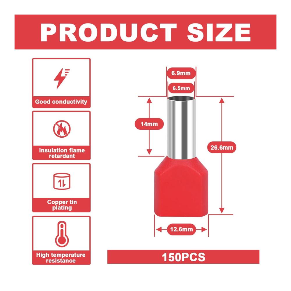 【150 Stück Twin Aderendhülsen】Die packung enthält 150 stück rote doppeladerendhülsen für 2×10,0mm² kabel.