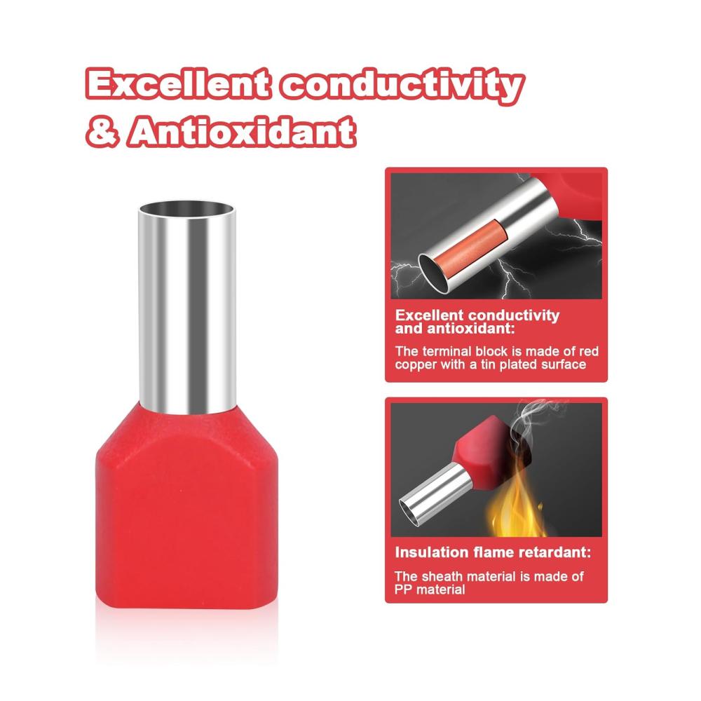 150 Stück Isolierte Aderendhülsen TE10-14 Zwillingaderendhülsen 2×10 0mm² Twin Aderendhülsen Wiederverschließbar Doppelt Aderendhülsen Rot Zwillings Aderendhülse