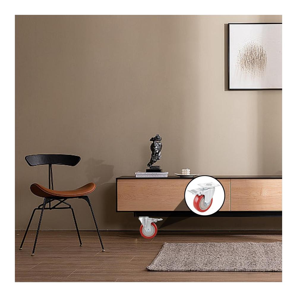 【PRAKTISCHES DESIGN】 Das Lenkrollen mit Möbel Bremse ist um 360 Grad schwenkbar und ermöglicht eine Drehung auf Augenhöhe. Ideal für das Bewegen von leichten Möbeln und Displays, sie sind sowohl leise als auch sicher. Die glatte Oberfläche der Rollen wird nicht mit Haaren, Schutt und Staub stecken bleiben. Rollen mit Bremsen sind für alle Bodenarten geeignet.