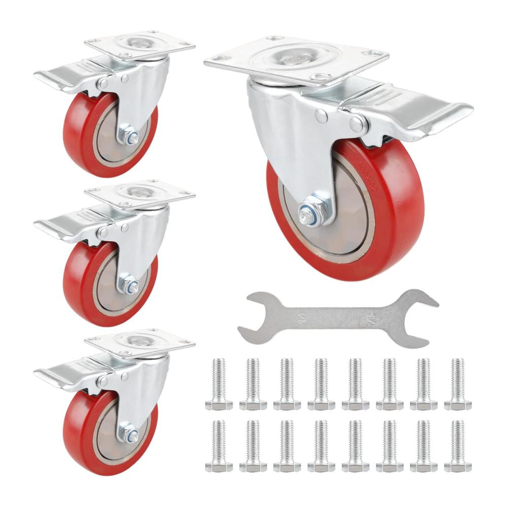 【PRODUKT DETAILS】Die Größe des Möbelrollen Schwerlast mit Bremsen ist vier Zoll, 100x32MM, Sie erhalten 4 Räder, 16 Sechskantschrauben und 1 Platte Griffe, viel Menge, um Ihre täglichen Bedürfnisse zu erfüllen, Sie können Ihre Möbel leicht und frei bewegen, nachdem Sie diese Universalräder installiert haben.