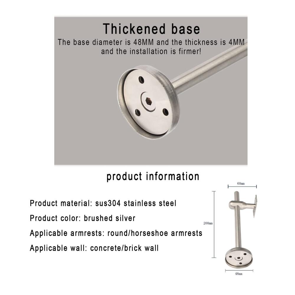 ABMESSUNGEN DER WANDHALTERUNGEN: Herkömmliche Wandhalterungen sind 100 mm bis 250 mm lang und 60 mm hoch; Der Durchmesser der horizontalen Stange beträgt 12 mm. Die direkte Länge kann horizontal eingestellt werden, was die Anpassung an verschiedene Treppenhandläufe erleichtert.