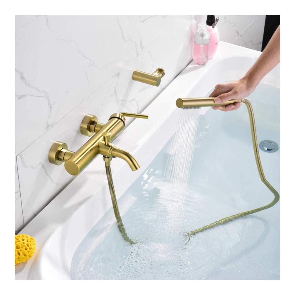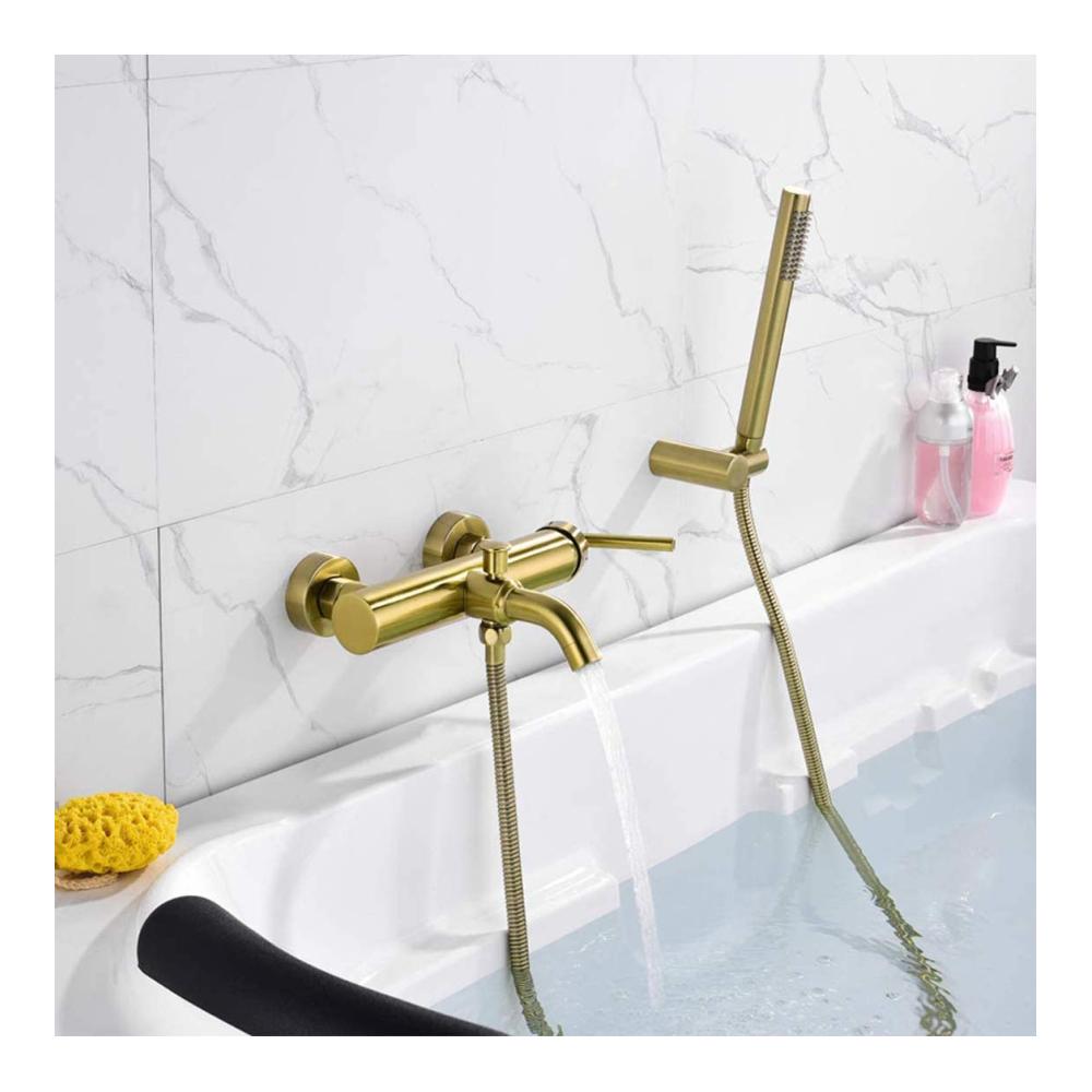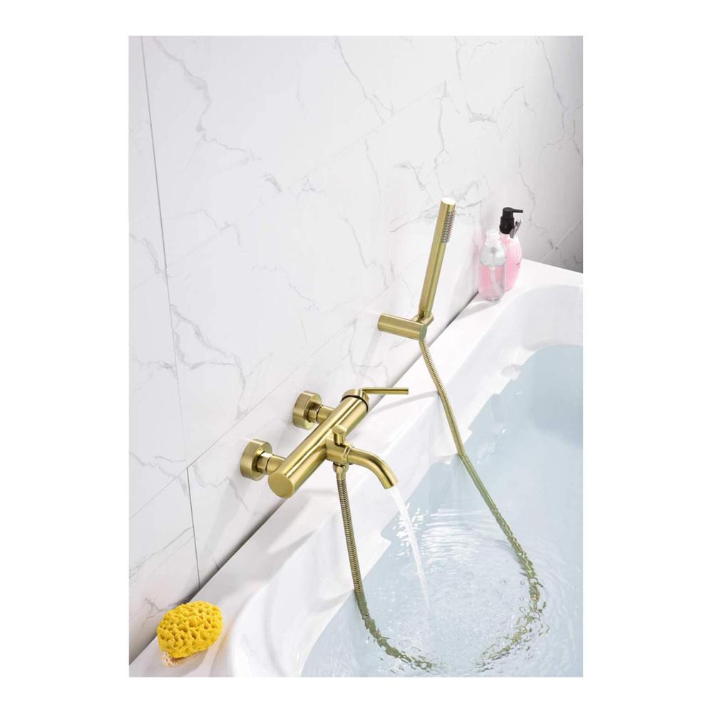 Erleben Sie ultimativen Luxus in Ihrem Badezimmer mit unseren gebürsteten goldenen Badewannenarmaturen mit Handbrause. Unser exklusives Duschset aus hochwertigem Messing ist nicht nur ein funktionales Element, sondern auch ein elegantes Statement für Ihr Bad.