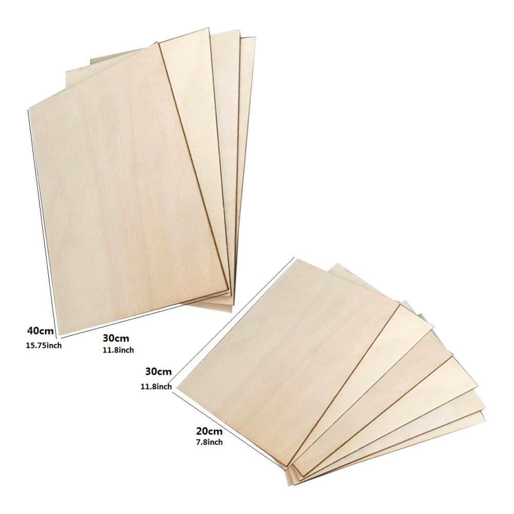Fycooler Sperrholzplatte 400x300mm & 300x200mm Birkensperrholz Dünne Holz-Zuschnitte 10pcs Sperrholzplatten aus Birkenholz-Perfektes Blatt für Laubsäge,Brandmalerei,Laserschnitt,CNC Router,Basteln