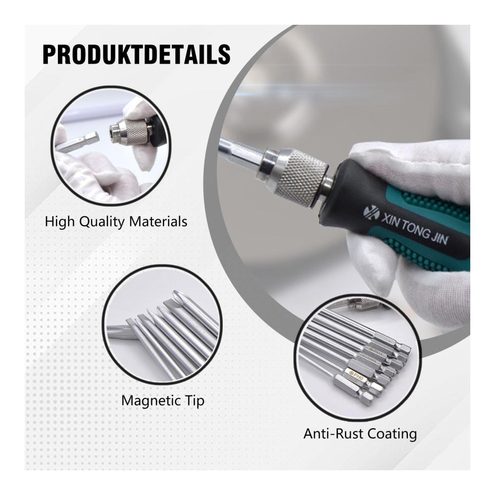 Sie suchen nach einem hochwertigen Schraubendreher-Bit-Set, das Ihre Anforderungen an Langlebigkeit, Vielseitigkeit und Präzision erfüllt? Unser 9-teiliges Lang Schraubendreher Bit Set ist die ideale Wahl für Profis und Heimwerker gleichermaßen.