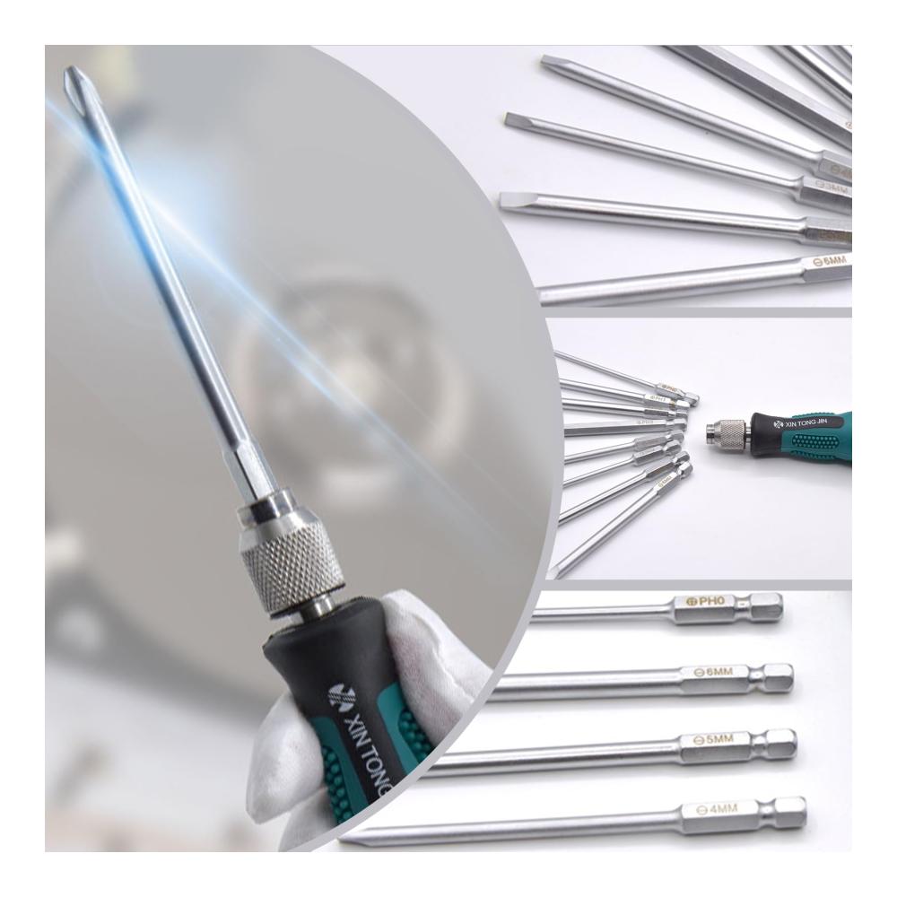 Die Schlüsselmerkmale dieses Sets umfassen eine Auswahl von SL3-SL6 und PH0-PH3 Sternenkopf Schraubendreher-Bits, die Ihnen eine breite Palette von Anwendungsmöglichkeiten bieten. Egal, ob Sie an Elektroprojekten arbeiten oder einfache Reparaturen zu Hause durchführen, dieses magnetische Bit-Set ist dafür ausgelegt, Ihre Erwartungen zu übertreffen.