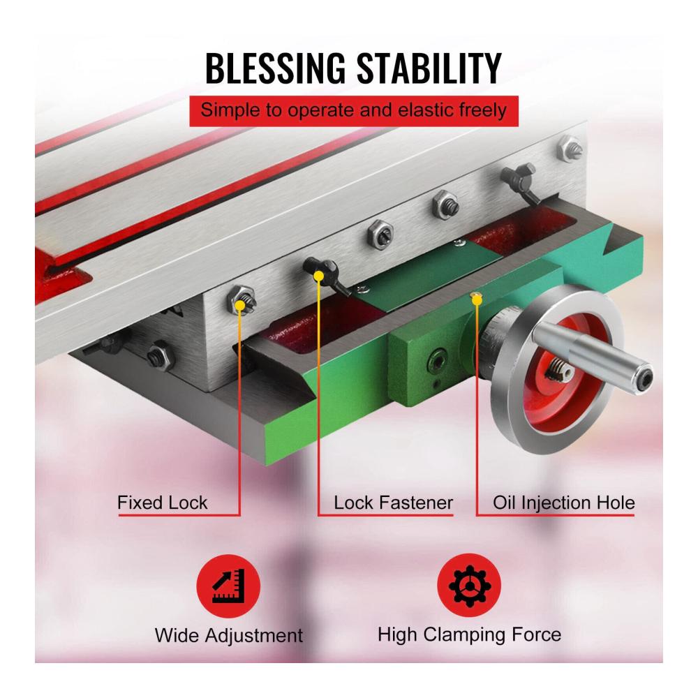Der Tisch mit den Maßen 450×170 mm ermöglicht präzise Bewegungen in horizontaler und vertikaler Richtung, wodurch Sie die volle Kontrolle über Ihre Bearbeitung haben. Das Kernschlüsselwort Bohrständer und Bohr-Zubehör spiegeln sich in der Konstruktion wider, um den Anforderungen anspruchsvoller Bohrarbeiten gerecht zu werden.