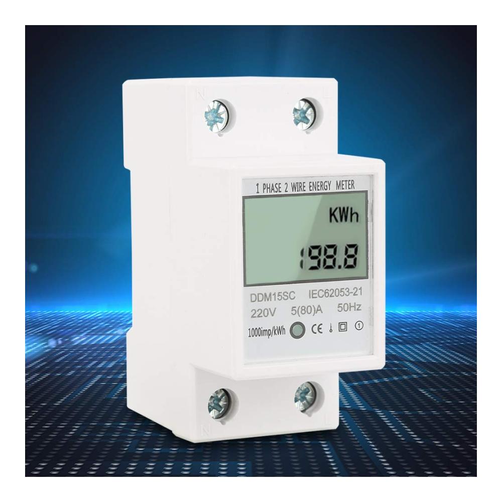 Digitales Strommessgerät DDM15SC – LCD-Anzeige einphasig 80A DIN-Schiene geeichter Wechselstromzähler für präzise KWh-Messung und Hutschiene Montage