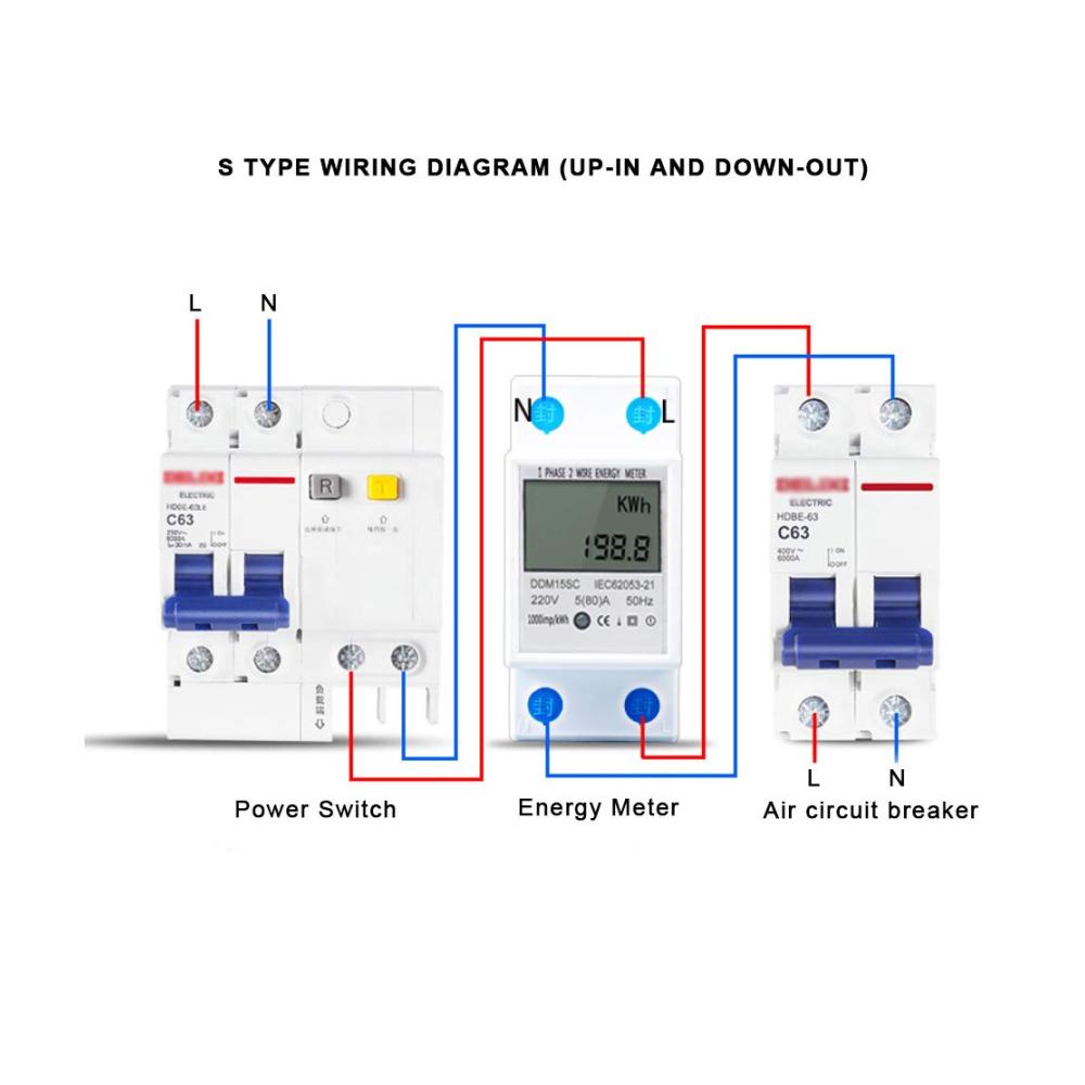 Fyearfly LCD Digitaler Stromzähler 5-80A DDM15SC