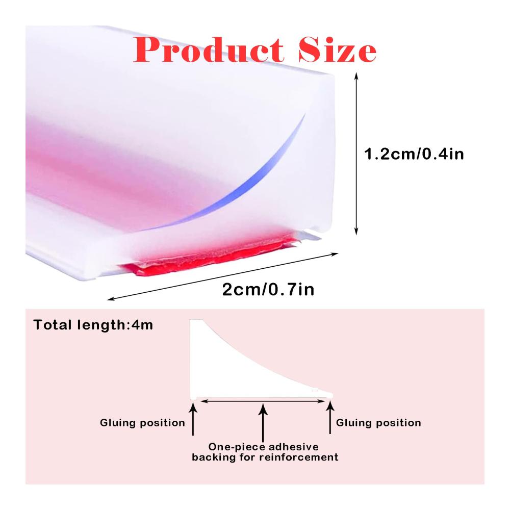 【Verbesserte Wasserdichtigkeit】Die wasserrückhaltestreifen abmessungen sind 4m(L) x 1,2 cm (H) x 2 cm (B), Geliefert mit einem Silikonkautschuk, Hilft Ihnen, besser zu bleiben. Die Duschdichtung Transparent bietet eine ausgezeichnete Abdichtung, um das Austreten von Wasser aus der Dusche zu verhindern.
