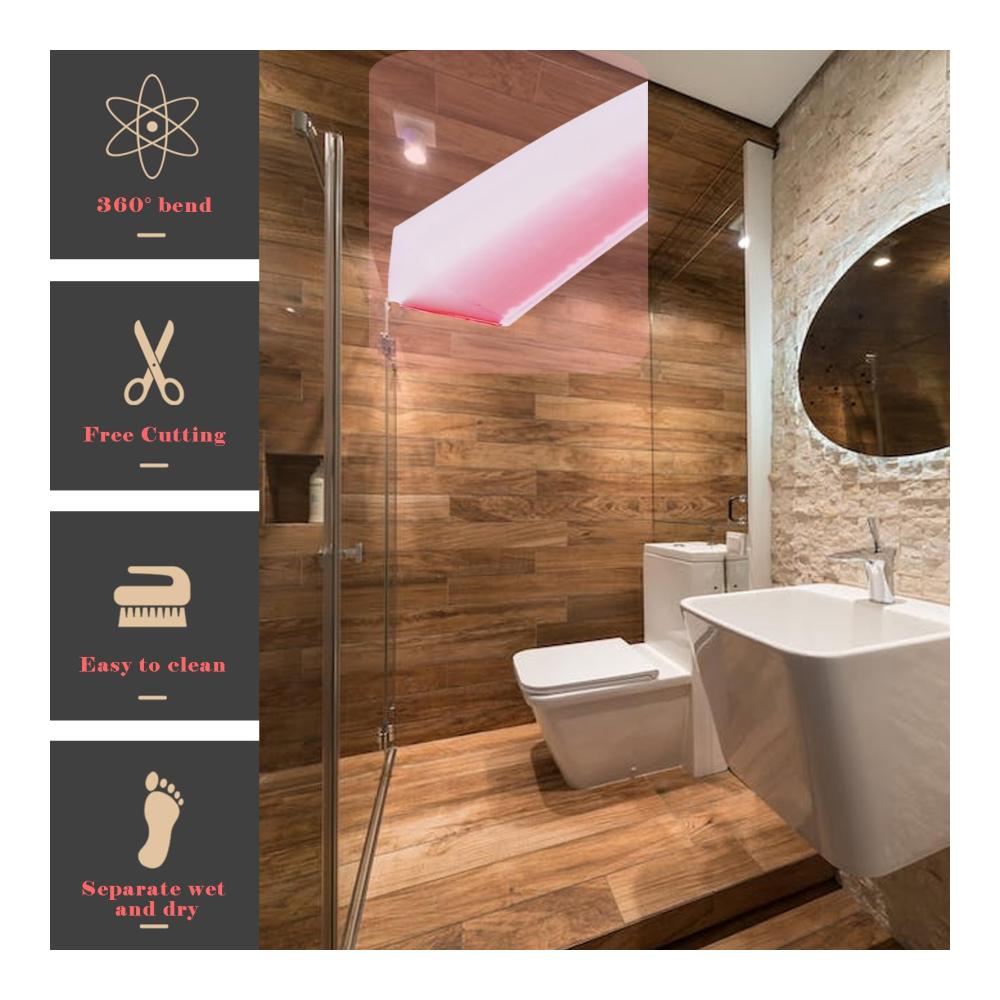 【Transparent Selbstklebend Duschwasserstop】Der schwallschutzleiste ist aus weichem Silikon, ist die Duschdichtung Transparent robust und langlebig, Anti-Schimmel und Anti-Feuchtigkeit, Leicht zu reinigen, was zu einer längeren Lebensdauer führt.