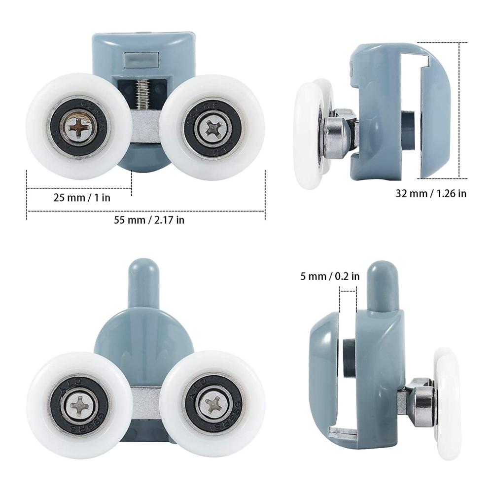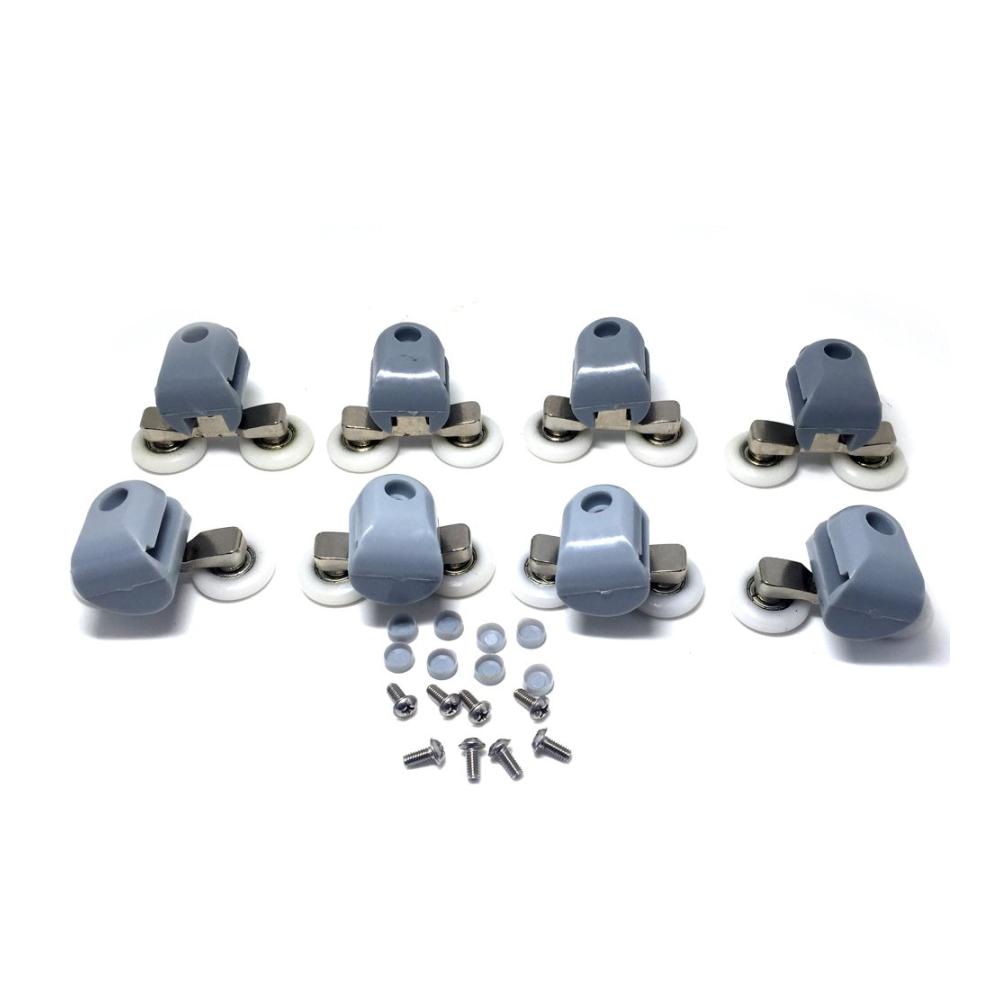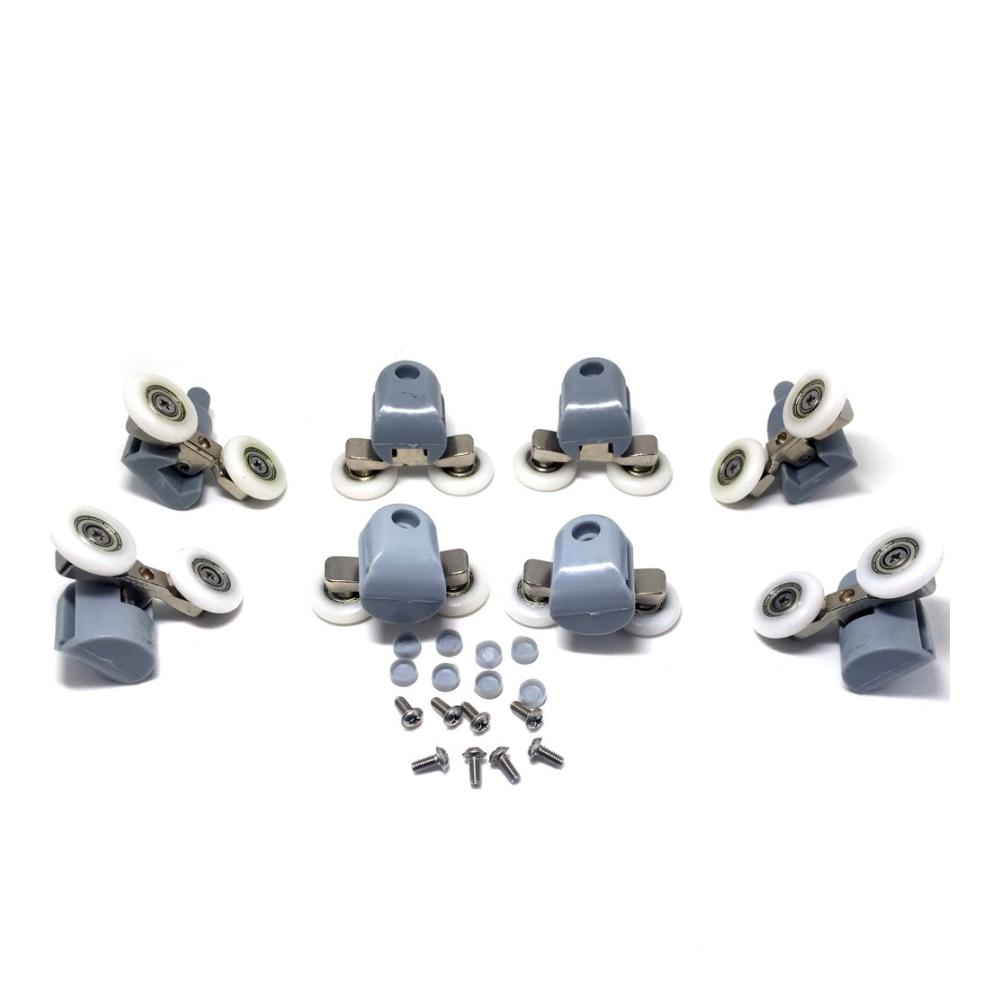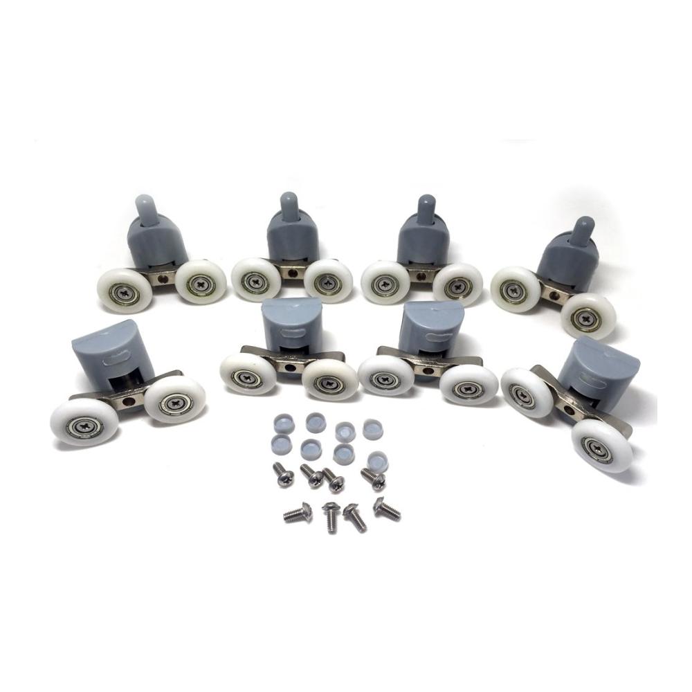 1 Set mit 8 Doppelrollen für Duschtüren: 4 Rollen oben und 4 Rollen unten.