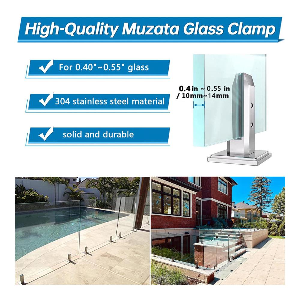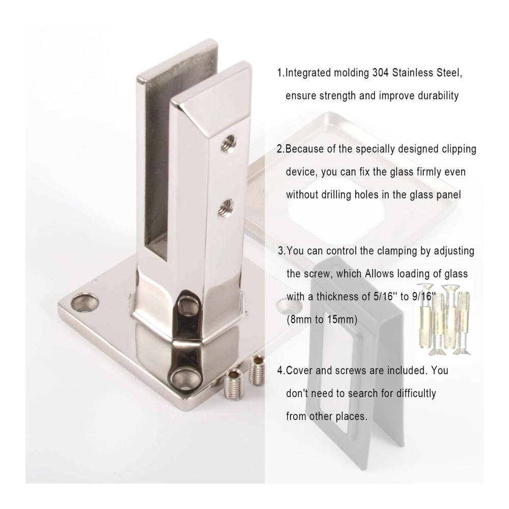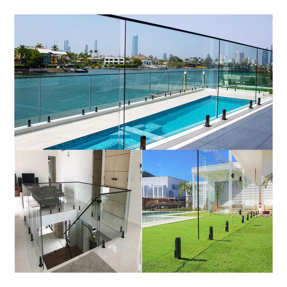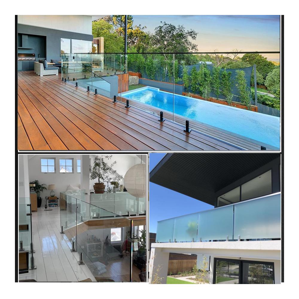 BREITE ANWENDUNG: Dieser Pfosten aus Edelstahl 304 eignet sich für Glasschwimmbäder, Balustraden, Glasgärten, Glastreppen und Balkone. Ideal für den Innen- und Außenbereich. Erhältlich für rahmenlose Glasscheiben mit einer Dicke von 10 mm bis 14 mm oder 0,39 bis 0,55 Zoll.
