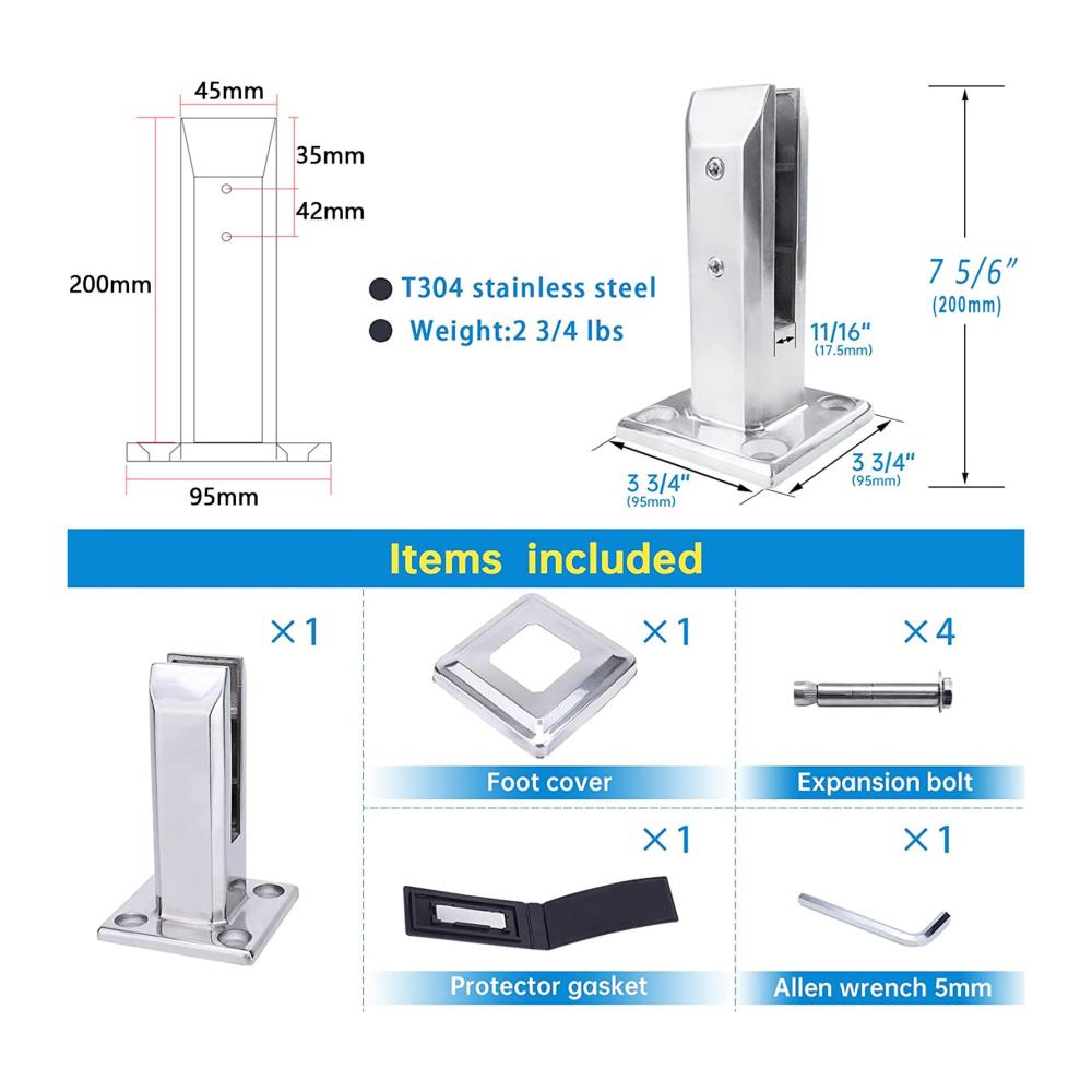 Besonderheit:Der Baluster-Klemmpfosten aus Edelstahl 304 besteht aus Metall mit guter Leistung. Sie können frei wählen, welche Beiträge Sie benötigen. Es ist äußerst robust und sorgt dafür, dass Ihr Äußeres oder Inneres jahrelang glänzt!Die Beleuchtung ist gut, das Glas vermittelt ein starkes Transparenzgefühl und der Lichteffekt des erweiterten Treppenraums ist stärker, wodurch die Transparenz des gesamten Treppenhauses deutlich wirdGlasgeländersystem, das in verschiedenen Innengeländer, Schwimmbadgeländer, Innentrennwänden, Treppengeländern, Balkonen, Plattformkorridoren und den inneren Barrieren des Atriums verwendet wird. Es kann auch zum Verbinden von Holz oder Kunststoffen verwendet werden.Diese Glasklemmen eignen sich perfekt zum Befestigen von Glas an Balustraden, Treppen, Poolglashalterungen, Hausgärten, Balkonhandläufen, Balustradenzäunen, Deckhandlaufhalterungen und Bodenhalterungen. Ideal für den Innen- und AußenbereichErhältlich für rahmenlose Glasscheiben mit einer Dicke von 10 mm bis 14 mm oder 0,39 bis 0,55 Zoll.Anmerkungen:Aufgrund unterschiedlicher Beleuchtungs- und Bildschirmeinstellungen kann die Farbe des Produkts geringfügig vom Bild abweichen.Dieses Paket beinhaltet:Im Lieferumfang sind 4 x Betonbodenschrauben, 1 x Plattenabdeckung und 1 x Gummidichtung enthalten