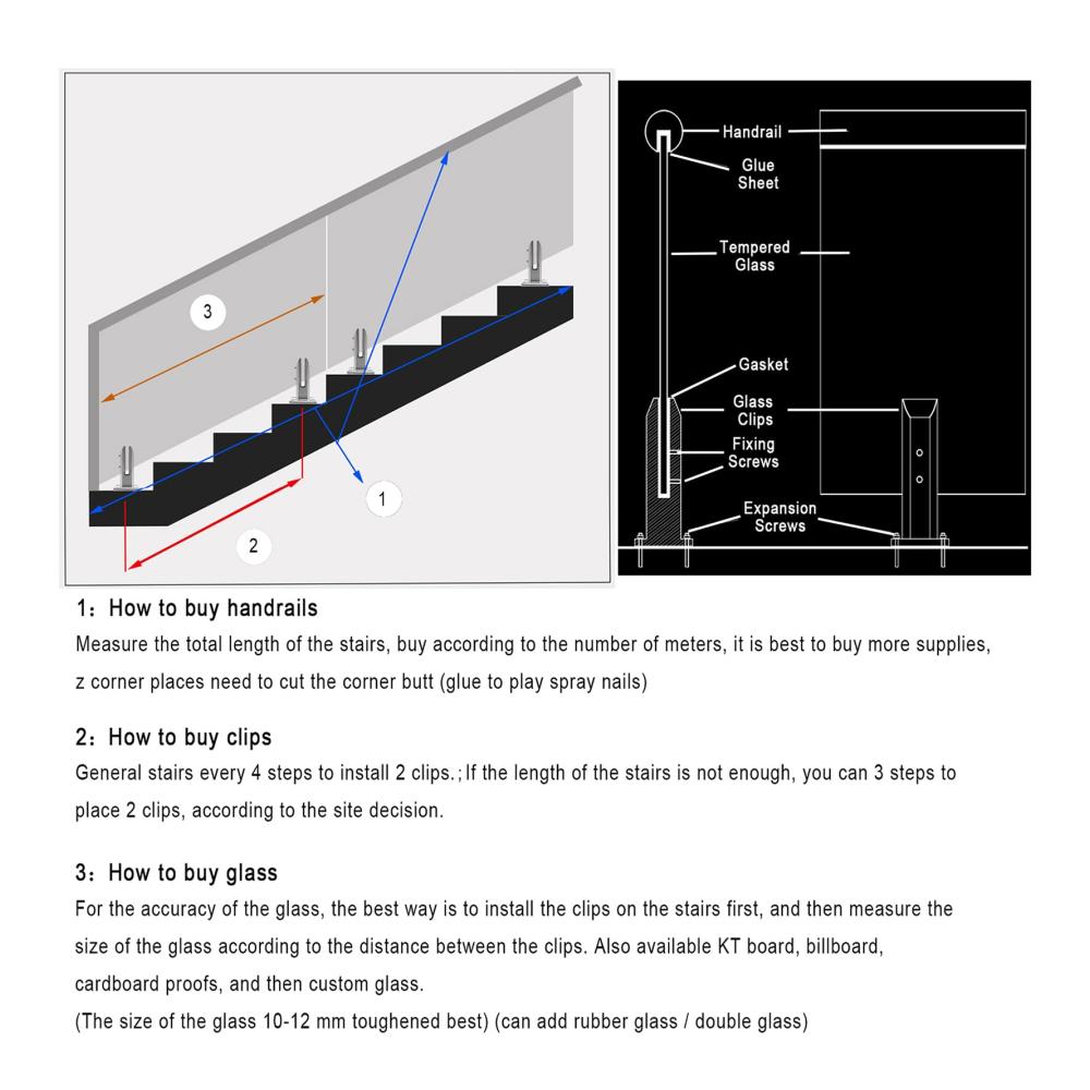 SICHERES DESIGN: Unsere Glashalterungen werden durch integralen Guss aus SS304-Material hergestellt und bieten die Vorteile hoher Festigkeit und Sicherheit. Ausgestattet mit einer Glasdichtung, zerkratzt das Glas nicht. Die Leitplanke aus gehärtetem Glas ist leicht zu reinigen und 0 Formaldehyd ist besser geeignet für Familien mit Babys.