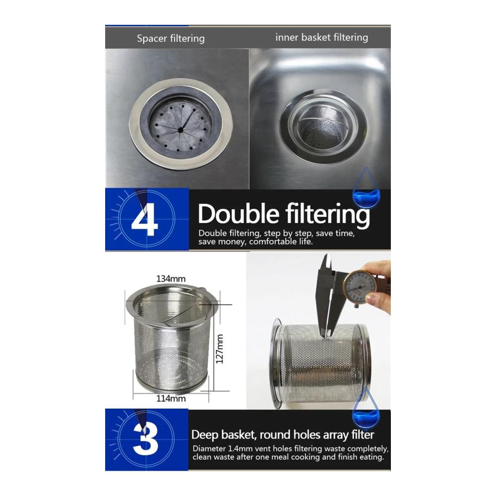 Entdecken Sie den hochwertigen Edelstahl-Siebfilter-Ablaufkorb für Ihre Küchenspüle mit unserem innovativen Abfallstopfen. Dieses unverzichtbare Accessoire wurde entwickelt, um eine effektive Filtrierung sowohl unter als auch über der Spüle zu gewährleisten, und setzt damit neue Maßstäbe in Sachen Hygiene und Funktionalität.
