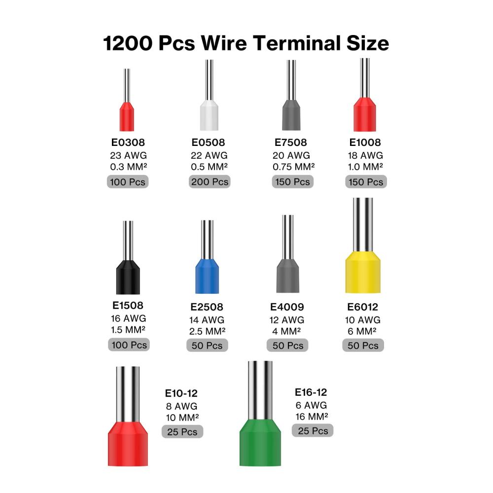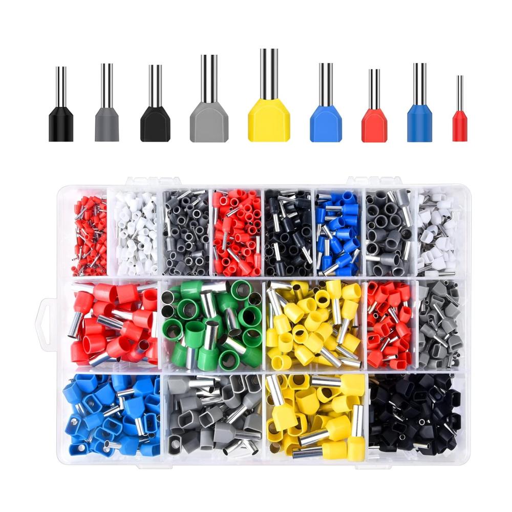 【Alle Größen】 Lytool Twin Aderendhülsen Sortiment Set befinden sich Aderendhülsen für abisolierte Kabelenden mit einem Querschnitt von 0,3 bis 16 mm²; enthält sowohl einzeilige Aderendhülsen (900Stk.) als auch die Aderendhülsen in der Twin-Ausführung (300Stk.)