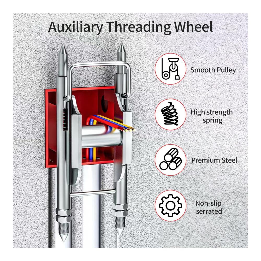 Unsere Drahteinfädelhilfe zeichnet sich durch ihre Anti-Rutsch-Sägezahn-Technologie und ihre flexible Riemenscheibe aus. Dieses einzigartige Design ermöglicht ein müheloses Einfädeln von Drähten und Kabeln in schwer zugänglichen Bereichen. Egal, ob Sie elektrische Verbindungen herstellen oder komplexe Installationen durchführen, unser Werkzeug macht das Einfädeln zu einem Kinderspiel.