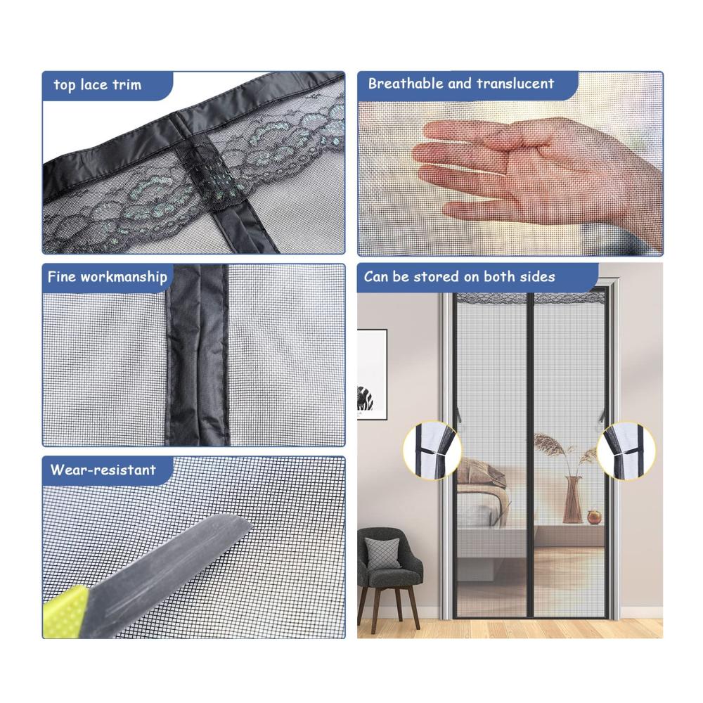 [Glasfaser-Magnet Fliegengitter Tür Strapazierfähiger Mesh-Türvorhang Freihändig Für Sommer-Schiebetüren Schlafzimmer Haustier- Und Kinderfreundlich Schwarz 95X200cm]
