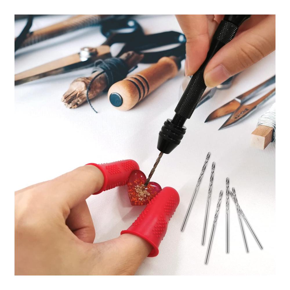 【Antirutsch Silikon Fingerlinge】Pin Vise Handbohr kommt mit 5 Silikon Fingerlingen, sind sie aus hochwertigem Silikon, flexibel und bequem, es gibt drei Größen für Daumen und Zeigefinger usw., einfach an- und auszuziehen. Fingerschützer können Ihre Finger besser vor Verletzungen schützen, während sie Ihnen helfen, Gegenstände an Ort und Stelle zu sichern und das Verrutschen von Gegenständen zu verhindern