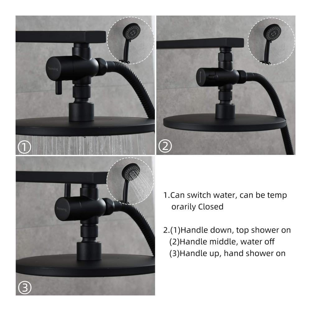 Unsere schwarze Oberfläche verleiht Ihrem Badezimmer eine moderne Ästhetik und passt perfekt zu verschiedenen Stilen. Das robuste Messingmaterial gewährleistet nicht nur eine lange Lebensdauer, sondern auch eine zuverlässige Leistung. Dieses Umstellventil ist perfekt für Liebhaber von Handbrausen und bietet eine einfache Möglichkeit, Ihre Dusche aufzuwerten.