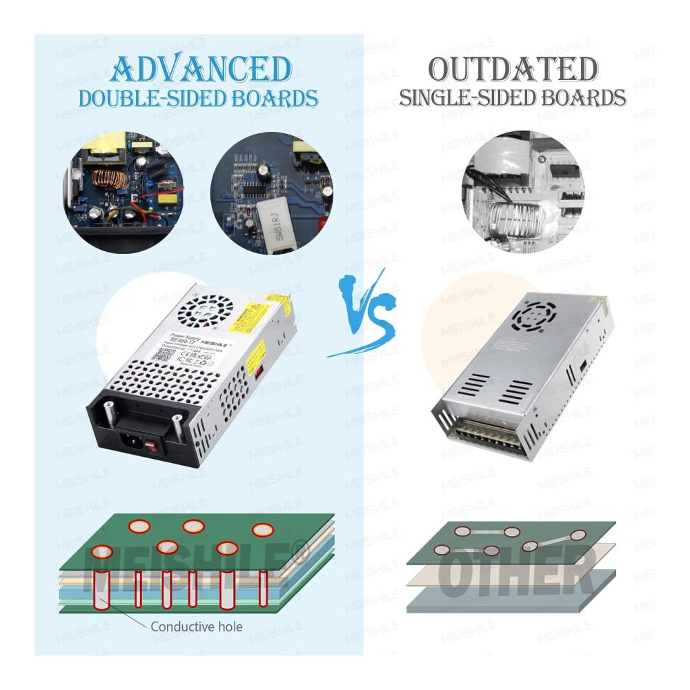 ▶PCB Doppelseitige Platine, Hochpräzise Komponenten, komplexer Plattenherstellungsprozess, feine Laminierung, mechanisierte und automatisierte Produktion. Hitze- und feuerbeständig, schwer entflammbar, nicht leicht zu korrodieren, nicht leicht zu schimmeln, feuchtigkeitsbeständig. Jedes MEISHILE Netzteil wird vor Verlassen des Werkes innerhalb von 6 Stunden fast 2 Stunden lang strengstens getestet