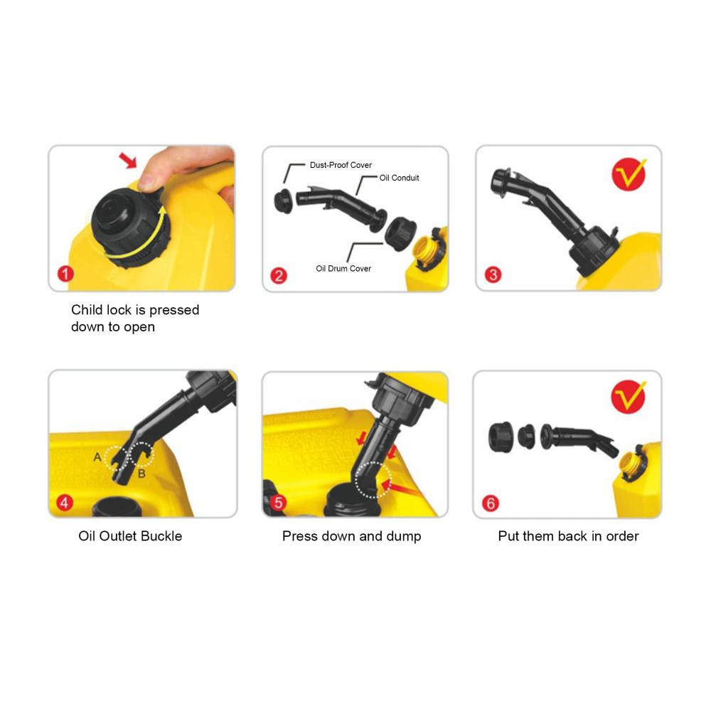 ϑAuslaufsicheres Design: Verhindern Sie Verschwendung und Schmutz beim Befüllen Ihres Tanks mit diesem Ersatzölbehälter, der über ein auslaufsicheres Design und einen Staubdeckel verfügt, der die Düse sauber hält.
