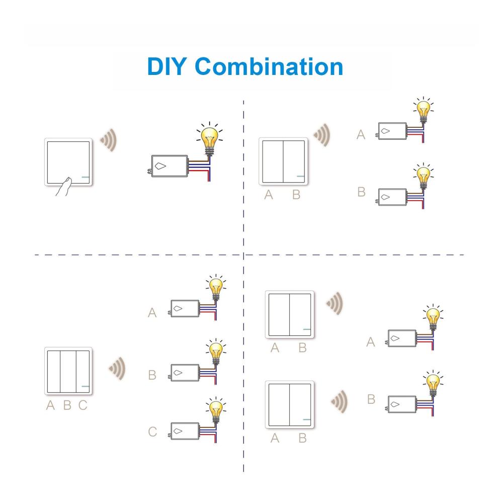 【DIY-Kombination】 Programmierbar und erweiterbar, zusätzliche Schalttafeln und Empfänger können dem Lancoon-Lichtschalter-Kit mit Fernbedienung hinzugefügt werden. Es ermöglicht die gleichzeitige Steuerung mehrerer Lampen durch einen Schalter und die Steuerung einer Lampe durch mehrere Schalter von verschiedenen Standorten aus.