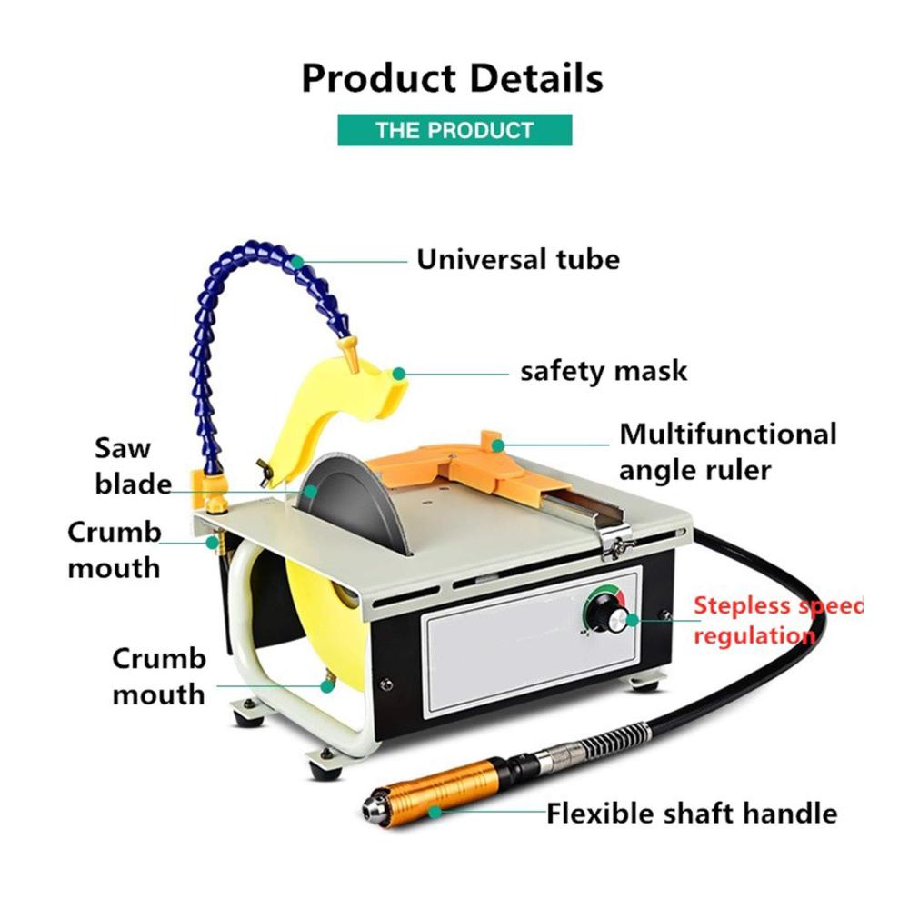 Entdecken Sie die Vielseitigkeit und Präzision unseres Mini-Tischsägen-Sets mit 1500 W Leistung. Diese Multifunktions-Schmuckstein-Polier-Puffermaschine ist ein unverzichtbares Werkzeug für DIY-Enthusiasten, die in der Edelstein-, Metall- und Holzbearbeitung tätig sind.