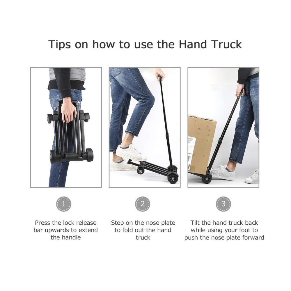 【Multifunctional & Widely Use】- The hand truck is suitable for shopping, business travel, cargo handling, luggage moving, outdoor carry, warehouse cargoes delivery, moving house, office daily use and so on.