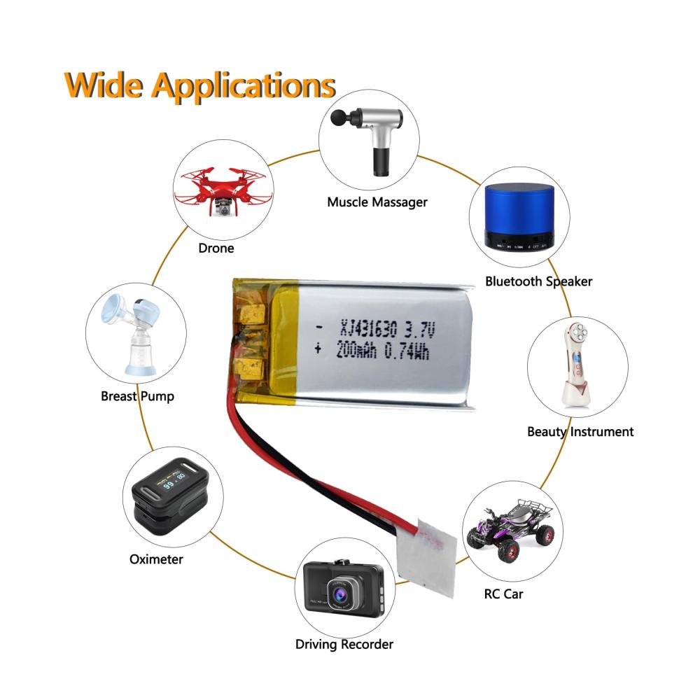 BREITE ANWENDUNG: Dieser Lipo-Akku kann für Bluetooth-Lautsprecher, Dashcam, Tastatur und Maus, Wi-Fi-Smart-Home-Systeme, PDA und Digitalkameras, GPS, E-Books, RC-Cars, Spielzeug usw. verwendet werden.