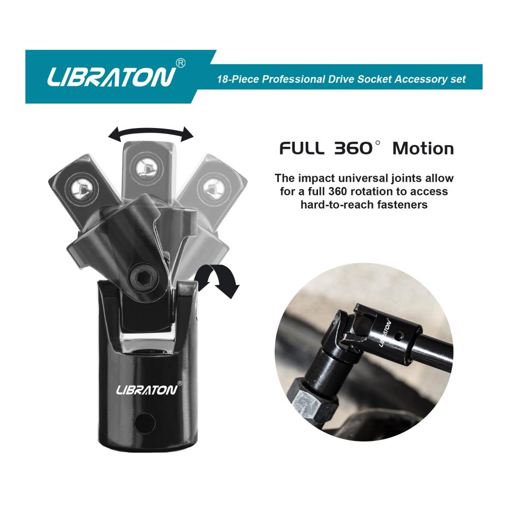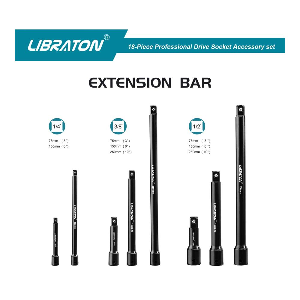 Das Libraton 18tlg Steckschlüssel Verlängerung Satz ist die perfekte Ergänzung für jeden Profi-Handwerker oder DIY-Enthusiasten. Vertrauen Sie auf Qualität und Effizienz – vertrauen Sie auf Libraton.