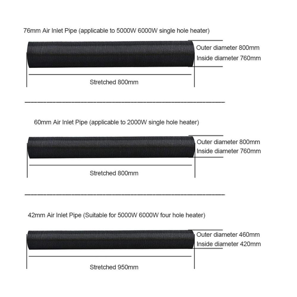 Eigenschaften: Material: aus Aluminiumfolie, stoßfest, korrosionsbeständig und schwer entflammbar. Ausziehbar: 60, 75 mm Durchmesser, Lufteinlassrohr, ausziehbar bis zu 800 mm. 42 mm ausziehbar: 42 mm Durchmesser Lufteinlassrohr, ausziehbar bis zu 1000 mm. Drei Durchmesser: Drei Durchmesser, geeignet für die meisten Ablaufschläuche, um Ihre Bedürfnisse zu erfüllen. Anlässe: Hauptsächlich für 2000 W oder 6000 W Luftheizungen verwendet. Heiß- und Kaltluftkanäle für Heizung, etc. Spezifikationen: Material: Aluminiumfolie. Farbe: Schwarz. Durchmesser: ca. ): 42, 60, 76 mm Lieferumfang: Wahl A: 1 x Lufteinlassrohr (Durchmesser 42, 60, 76 mm optional). Wahl B: 1 x Lufteinlassrohr (Durchmesser 76 mm). Hinweis: 1. Aufgrund unterschiedlicher Beleuchtungsverhältnisse und verschiedener Monitore kann die Farbe des tatsächlichen Produkts leicht von der Abbildung abweichen. 2. Die Maße wurden manuell bestimmt und können daher um 0,5 bis 2 cm abweichen.