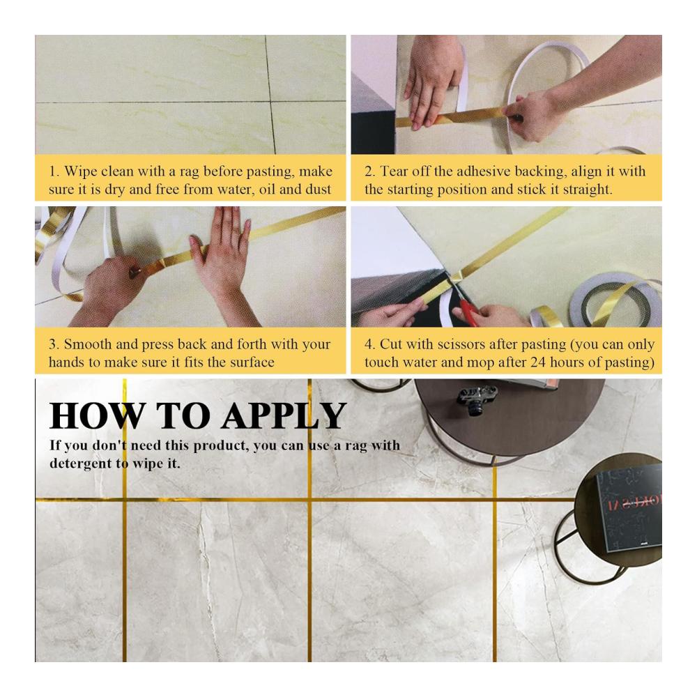 【Premium-Qualität】 Bodenfliesen-Dekorationsband ist aus hochwertigen Materialien hergestellt, verschleißfest, wasserdicht und nicht leicht zu verblassen. Drahtziehprozess, mehr Textur, die Oberfläche hat eine glänzende, lebendige Spiegel-Oberfläche.
