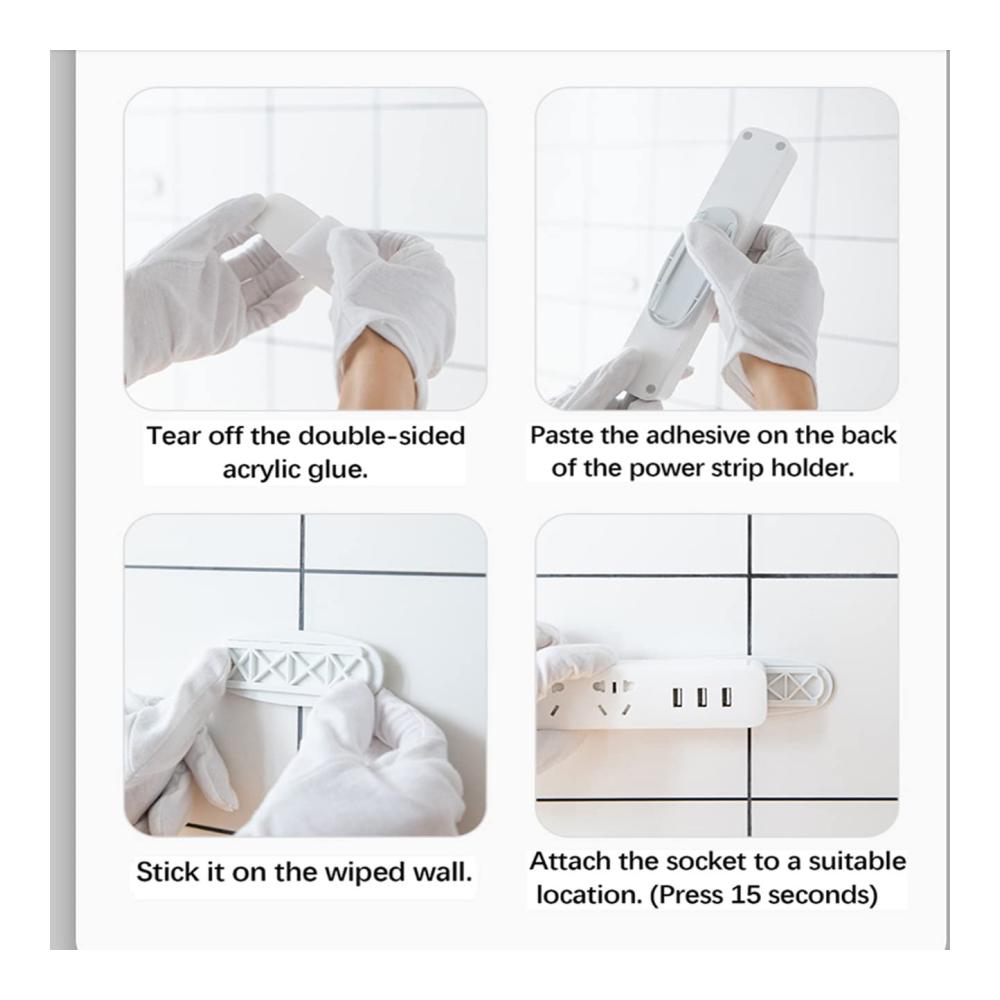 Die selbstklebende Wandbefestigung ermöglicht eine einfache und schnelle Montage ohne lästiges Bohren. Befestigen Sie die Halterungen einfach an der gewünschten Stelle an der Wand und platzieren Sie Ihre Steckdosenleisten sicher und griffbereit.