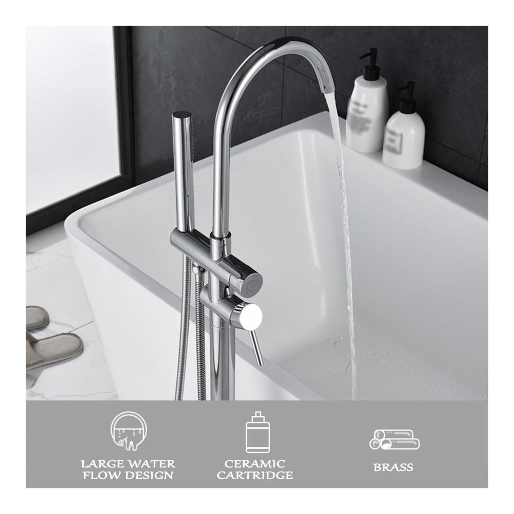 🛀◀Schlankes, modernes Design: Verleihen Sie Ihrem Badezimmer einen Hauch moderner Eleganz. Die schlanken Linien und Kurven unserer freistehenden Badewannenarmatur verschönern Ihren Raum und schaffen eine stilvolle Oase der Entspannung.