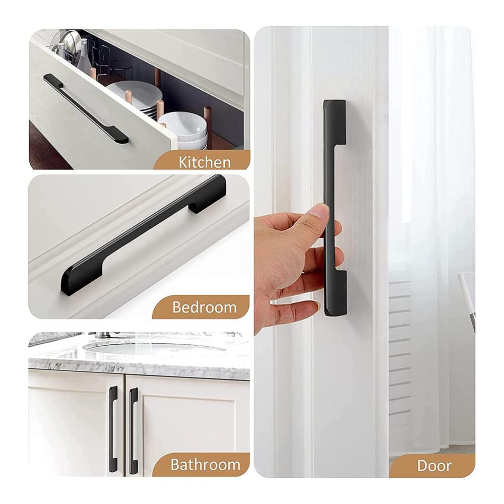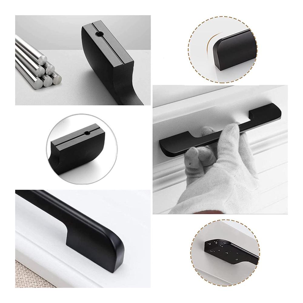 Hochwertiges Material: Der schwarze Schrankgriff besteht aus hochwertigem massivem Aluminiumlegierungsmaterial, das die Eigenschaften von Korrosionsbeständigkeit und hoher Dichte aufweist, um sicherzustellen, dass der Griff langlebig ist und nicht rostet.