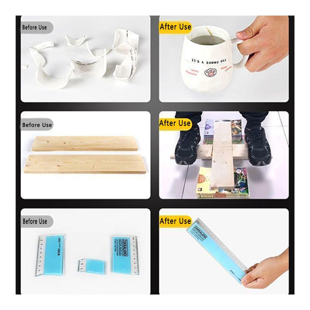 【Multi-Material-Reparaturklebstoff】—- Schweißen von hochfestem, öligem Sekundenkleber. Fokussierte Qualität, einzigartige Sofortklebeleistung, kann die zu reparierenden Gegenstände in Sekundenschnelle verkleben, um sie wie neu wiederherzustellen. Der Kleber ist weich, geruchsarm, stark klebrig, weißt nicht auf, vergilbt nicht und ist nach dem Trocknen immer noch elastisch. Dennoch ist ein fester und dauerhafter Halt gewährleistet.