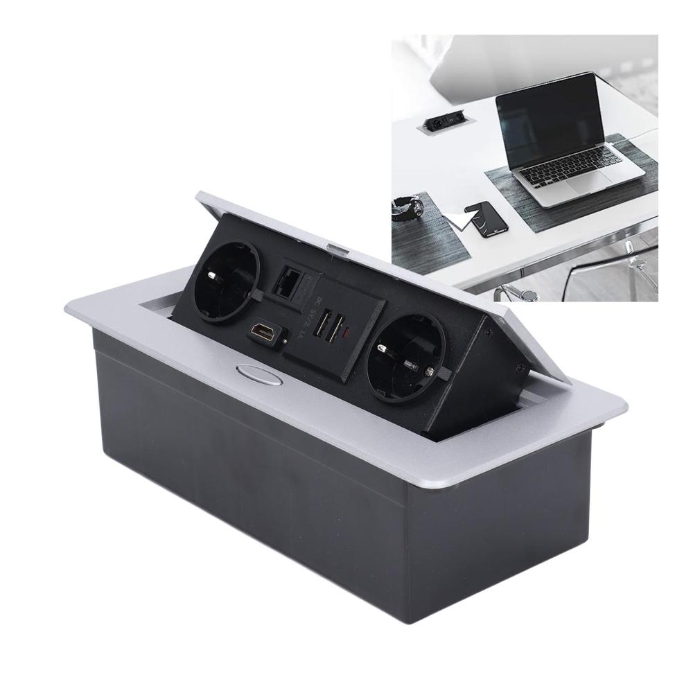 Die Desktop-Steckdose ist speziell für den Einsatz im Büro konzipiert und erfüllt den EU-Standard für AC 250V. Die praktische Tischanschlussbox ermöglicht es Ihnen, Ihre elektronischen Geräte direkt an Ihrem Arbeitsplatz anzuschließen, ohne sich Gedanken über lästige Kabelsalate machen zu müssen.