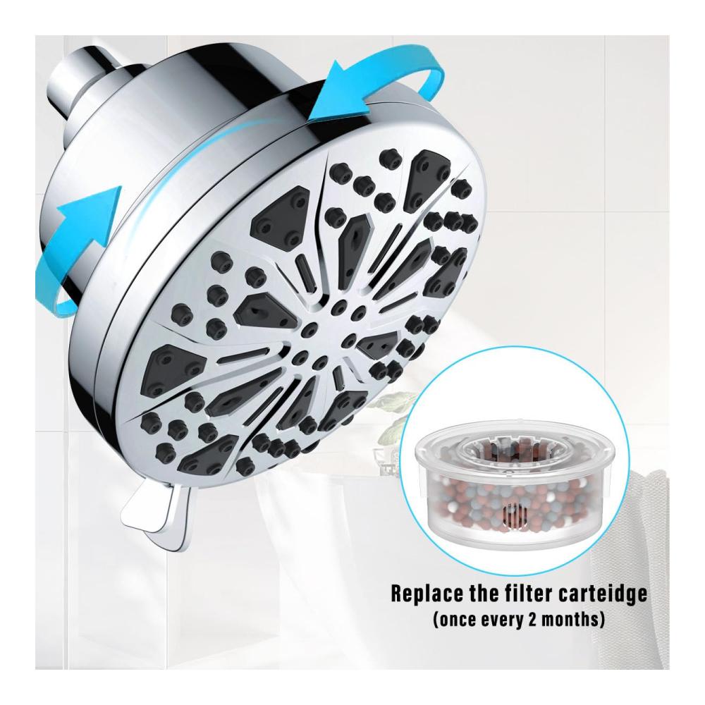 Die 360° verstellbare Kopfbrause ermöglicht es Ihnen, den Wasserstrahl genau nach Ihren Wünschen auszurichten, für eine optimale Duscherfahrung. Mit einem großzügigen 5-Zoll-Durchmesser sorgt dieser Duschkopf für eine großflächige Abdeckung und ein erfrischendes Gefühl bei jedem Gebrauch.