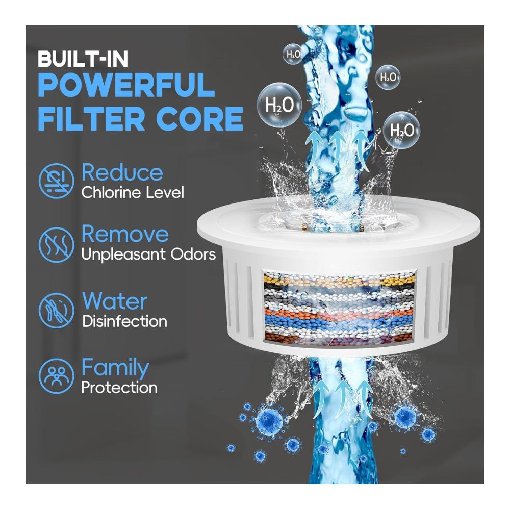 Hocheffiziente FiltrationDieser Filter verwendet das fortschrittliche KDF-55, um Chlor, Schwefelgeruch, Schwermetalle, Sedimente und Kalkablagerungen herauszufiltern. | Vermeiden Sie raue HautIhre Haut kann von sauberem Wasser sehr profitieren. Dieser Filter entfernt die meisten Verunreinigungen und sorgt so für perfektes Wasser für Ihre Haut. Ihr Duscherlebnis wird noch besser. | Vermeiden Sie trockenes HaarWenn Sie Ihr Haar mit verunreinigtem Wasser waschen, gefährden Sie Ihr Haar. Mit diesem Filter können Sie weicheres, reineres Wasser für gesünderes, lebendigeres Haar genießen. |