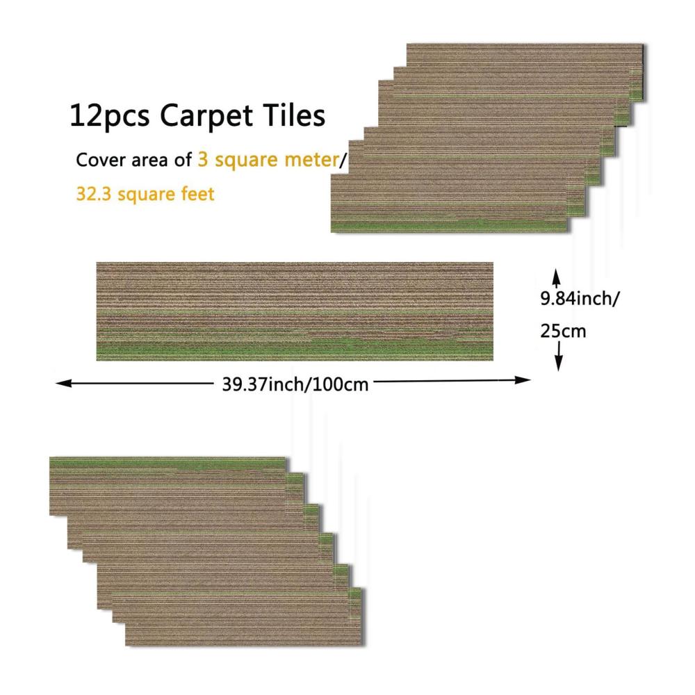 Flammhemmende Oberfläche von Teppichfliesen machen sicherer.Die strapazierfähigen Teppichbodenfliesen sind mit einer hochwertigen PVC-Rückseite ausgestattet, die verschleißfest ist und Geräusche reduziert. Rutschfeste Teppichbodenfliesen können fest am Boden befestigt werden.Sie können die Streifen-Teppichfliesen einfach zuschneiden und sie für die Verlegung nach Ihrem eigenen Zweck in verschiedene Formen bringen.Parameter:Material: PolypropylenUnten: PVC-unterstütztGröße: 100 cm x 25 cm pro StückNotiz:Da das Paket versiegelt und transportiert wird, kann es zu einem leichten Geruch kommen. Es wird empfohlen, es nach Erhalt der Ware einige Tage an einem belüfteten Ort aufzubewahren.Achten Sie darauf, die Größe zu bestätigen, bevor Sie eine Bestellung aufgeben, 4 Stück = 1 Quadratmeter.Aufgrund von Faktoren wie Beleuchtung, Farbtemperatur der Kamera oder des Handybildschirms während der Aufnahme kann es zu geringfügigen Abweichungen zwischen dem Bild und dem tatsächlichen Produkt kommen. Bitte beziehen Sie sich auf das tatsächliche Produkt.