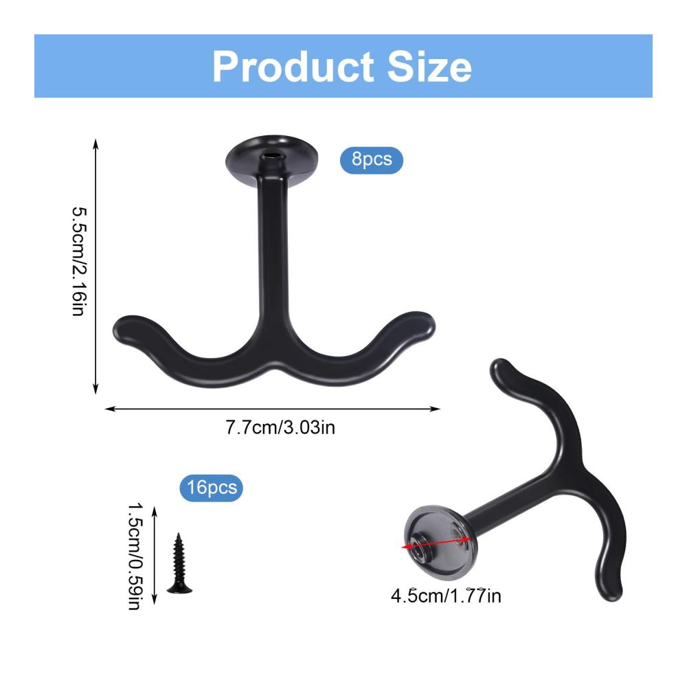 Deckenhaken 8 Stück Haken Decke Garderobenhaken Schwarz Kleiderhaken Haken Garderobe für Deckenventilator Yoga Pflanzen
