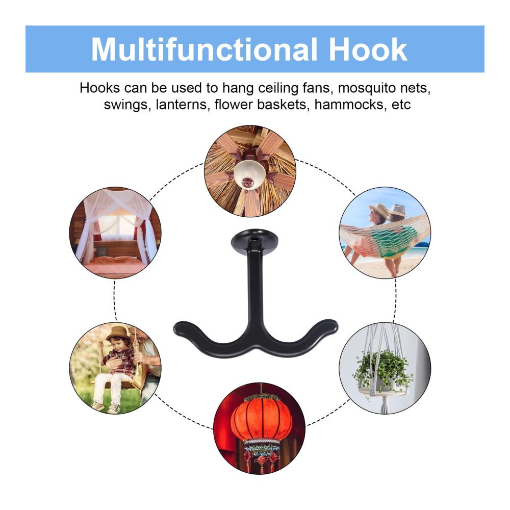 1.Dieser einfache und praktische garderobenhaken schwarz kann direkt an der Decke oder am Balken montiert werden, um Moskitonetze, Baldachine, Yoga-Hängematten, Deckenventilatoren, Lampen, Pflanzenkörbe, Windspiele, dekorative Anhänger usw. aufzuhängen.