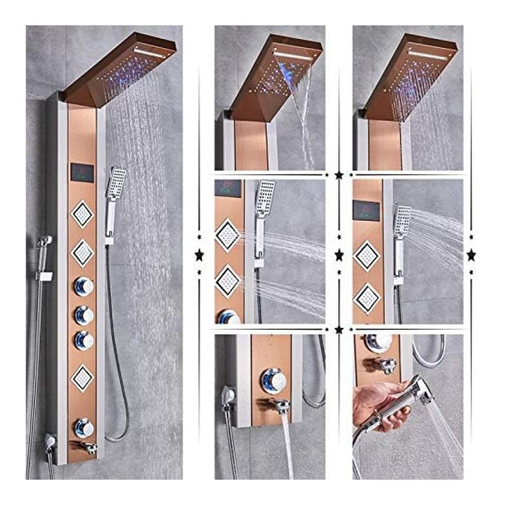 Badezimmer-Duscharmatur LED-Duschpaneel Säule Badewannen-Mischbatterie Mit Handbrause Temperaturanzeige Schwarz Und Gebürstet B Roségold