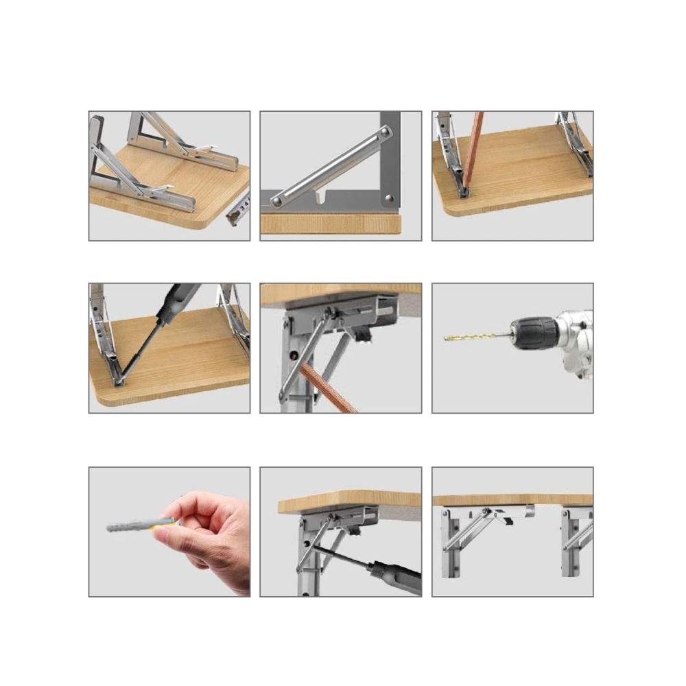 [Anwendungsbereich] Dieser faltbare Wandständer lässt sich leicht hochziehen und zusammenklappen, ideal zum Zusammenbauen von Tischplatten, Wandtischen, Campingtischen, Tischplatten, Regalen, Balkonen, Küchen, Wohnmobilen, Geschäften, Werkstätten, Badezimmern usw.