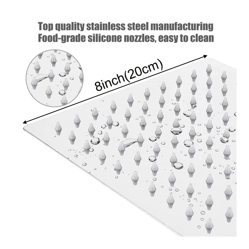 Erleben Sie ultimativen Duschkomfort mit unserem hochwertigen Duschkopf Regendusche 20cm. Dieser quadratische Regenduschkopf aus Edelstahl mit selbstreinigenden Düsen und chromglänzender Oberfläche bringt Stil und Entspannung in Ihr Badezimmer.