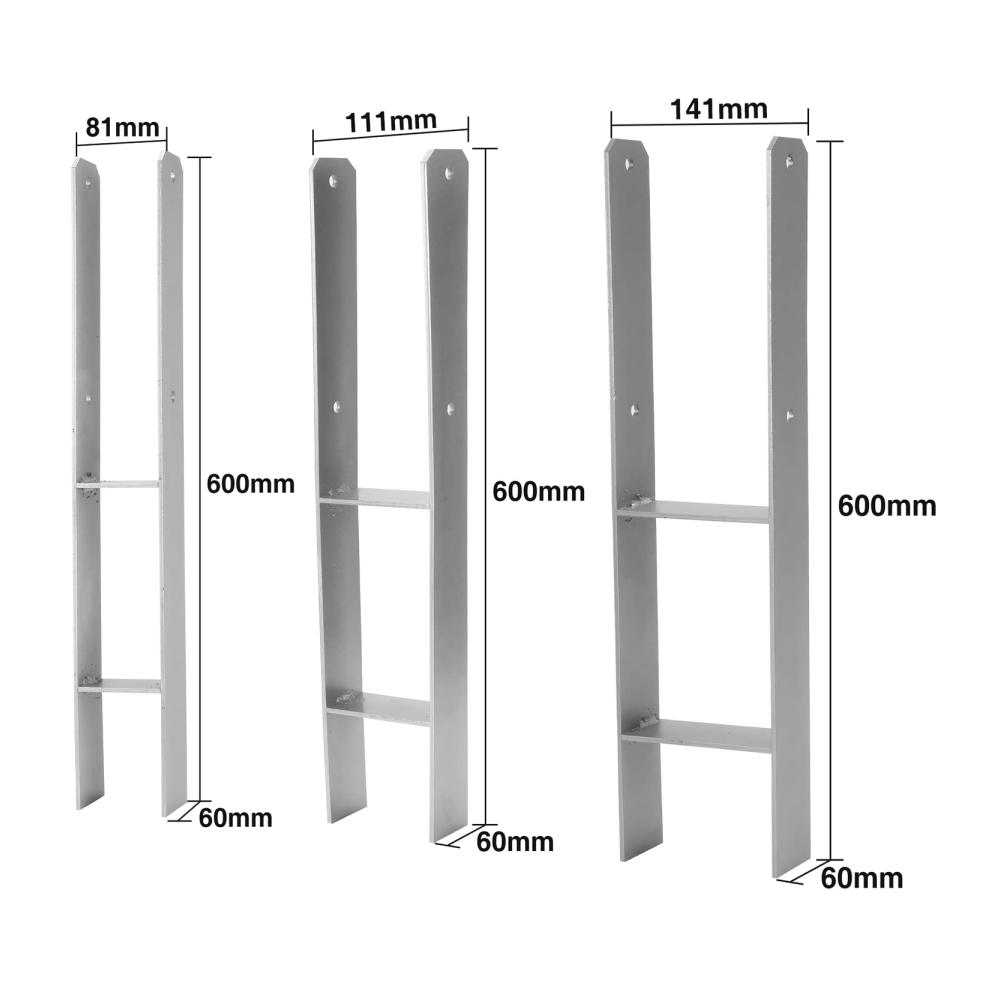 H-Pfostenanker 12 Stück H-anker Pfostenträger Bodenanker für Pfosten H-Pfostenschuh für Zaun und Gewächshaus Pfosten Vierkantholzpfosten(111x600mm)