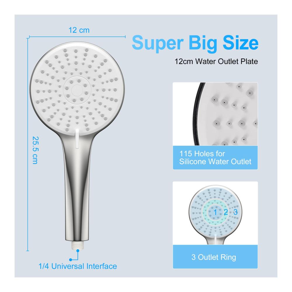 Entdecken Sie die ultimative Duscherlebnis mit unserem Großen Duschkopf, der speziell entwickelt wurde, um Ihnen einen erfrischenden und kraftvollen Wasserstrahl zu bieten. Die Hochdruck-Duschköpfe mit 5 verschiedenen Modi ermöglichen es Ihnen, das Duscherlebnis nach Ihren Vorlieben anzupassen.
